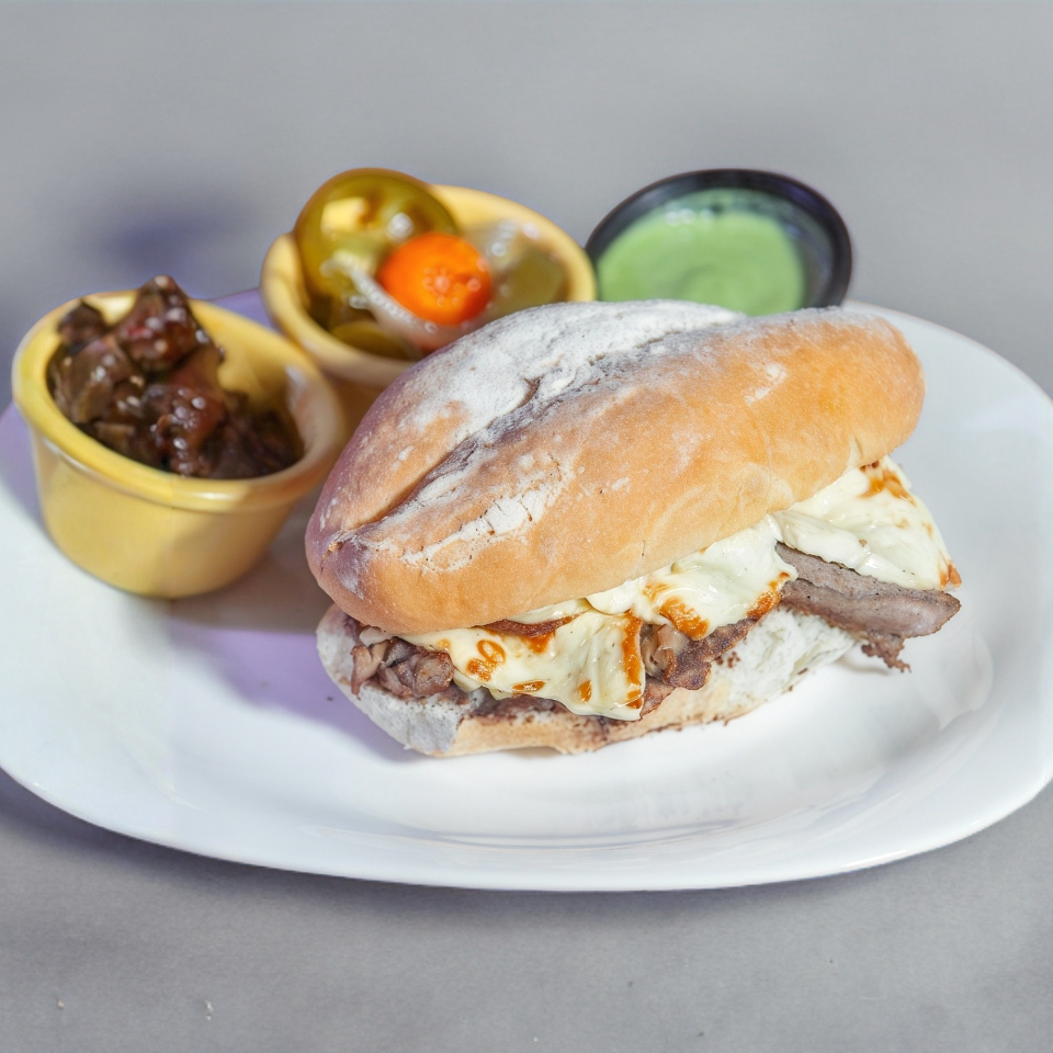 Mayonesa, frijoles refritos, arrachera, queso fresco, chiles curtidos o chipotle.