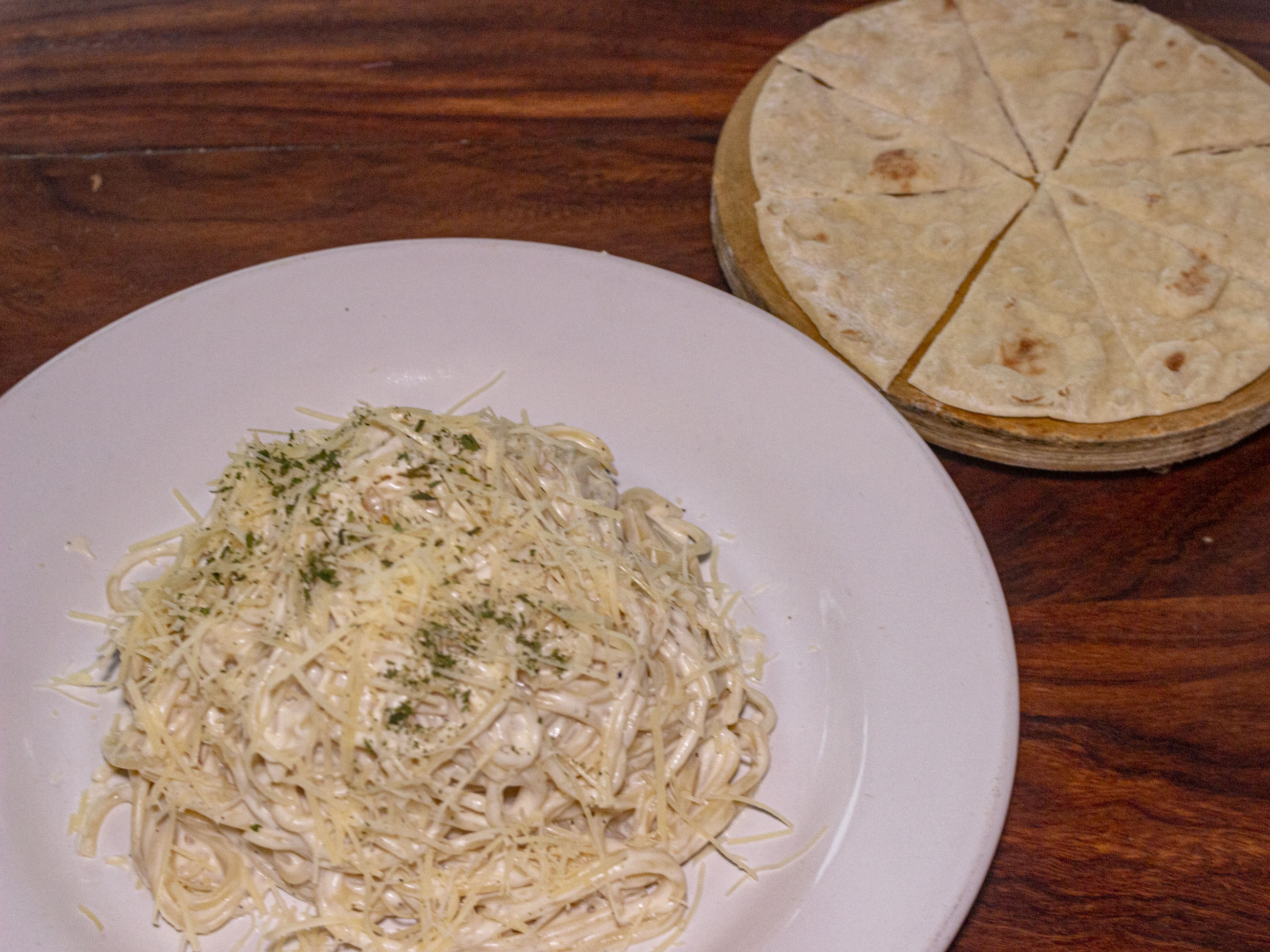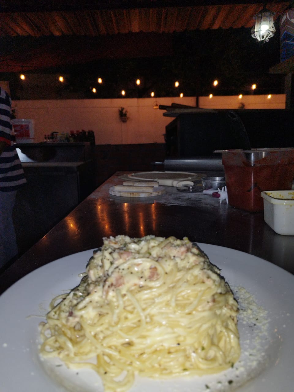 Aceite de olivo, ajo tocino y perejil, crema, yema de huevo y queso parmesano.