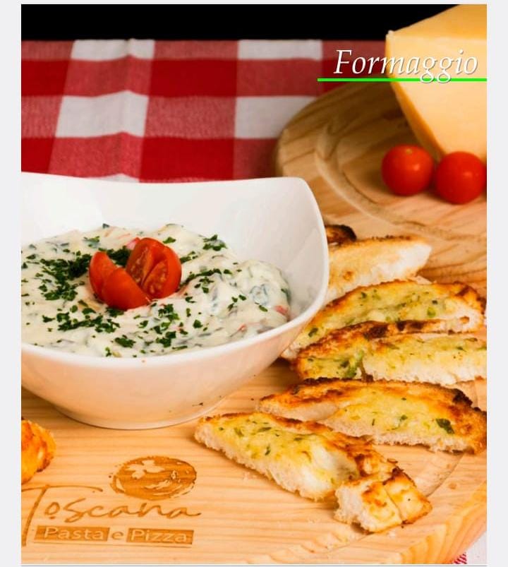 Combinación cremosa de queso con espinaca alcachofa y champiñón acompañada con pan de ajo