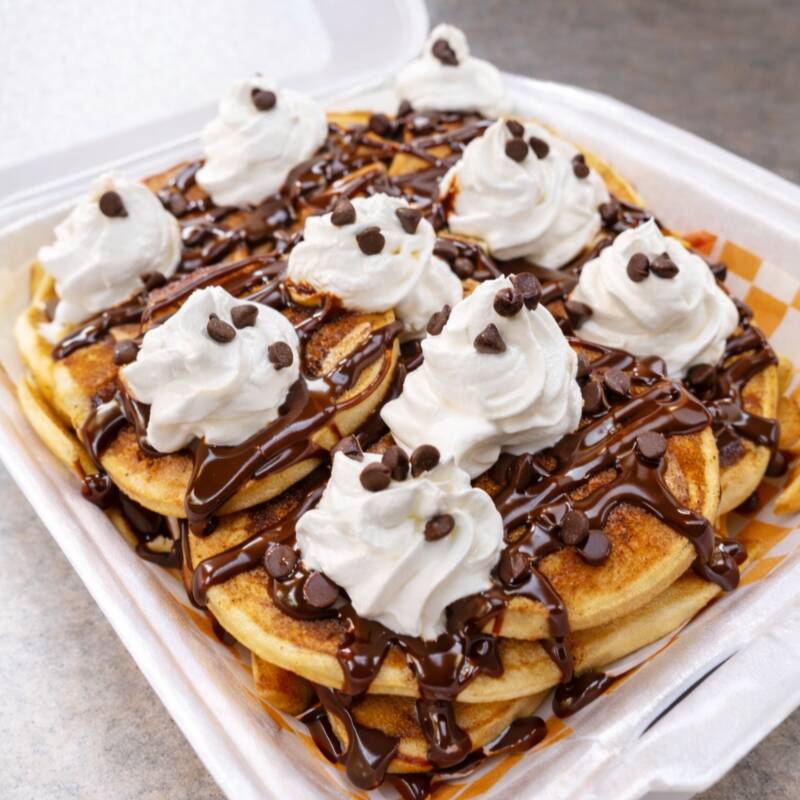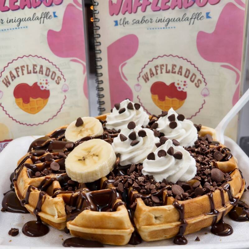 Waffle dorado y crujiente por fuera, suave por dentro, preparado al momento. Perfecto para disfrutar con fruta, crema o chocolate y personalizarlo a tu gusto.