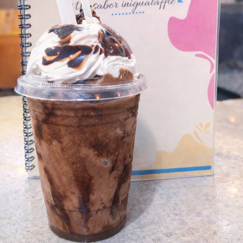 Frappé, coronado con crema batida y chocolate líquido con el sabor que mas te guste
