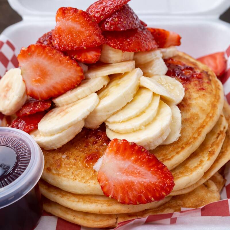 3 Hotcakes esponjosos preparados al momento, suaves por dentro y ligeramente dorados por fuera. Ideales para acompañar con fruta, crema o tu topping favorito.