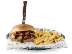 Carne de res, queso blanco, 3 piezas de aros de cebolla y salsa ahumada. 180 gramos de res y 220 gramos de papa. Burgers imperdibles con jugosa carne de res a la parrilla o pechuga de pollo, acompañadas con papas de la casa. ¡Un momento de tregua!