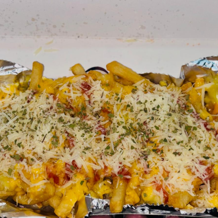 preparadas con cátsup, queso amarillo, mantequilla, aderezo de la casa, queso gratinado y un toque de perejil y un topping de su eleccion
