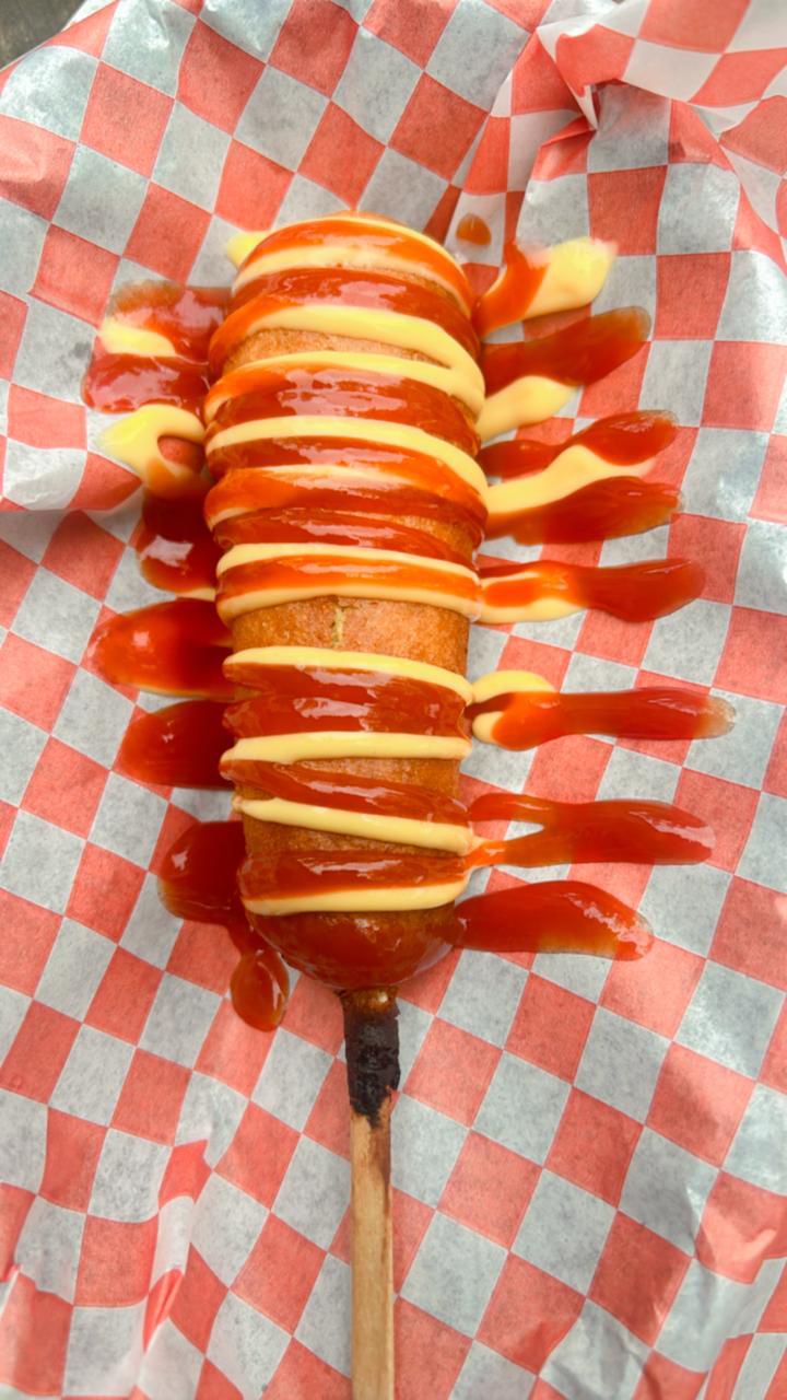 Hotdogs de la casa con una cama de boneless cubiertos de salsa de tu elección