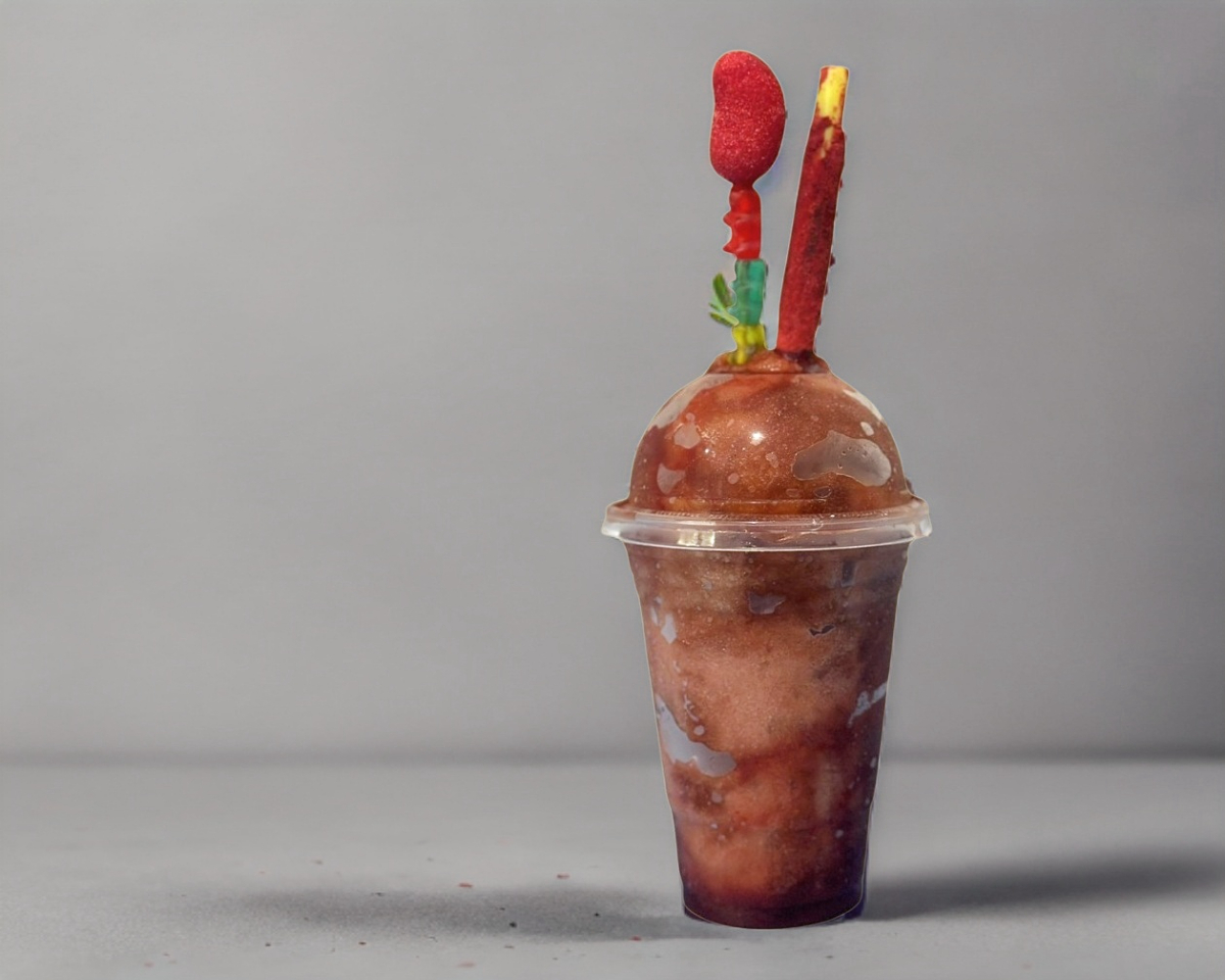 Bebida frappeada a base de agua sabor cereza chamoy.