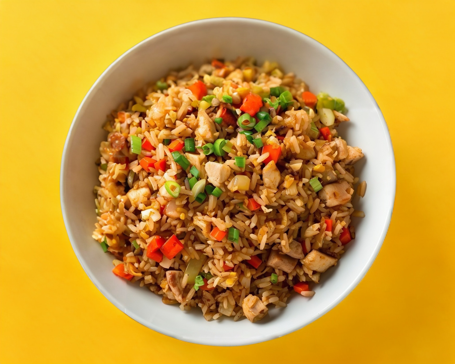 Arroz frito con rebanadas de aguacate con Tampico y queso crema.