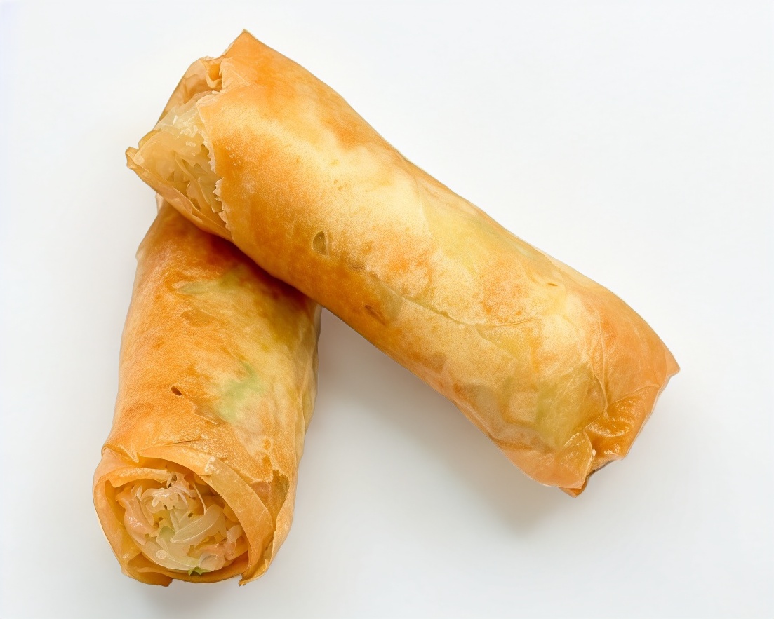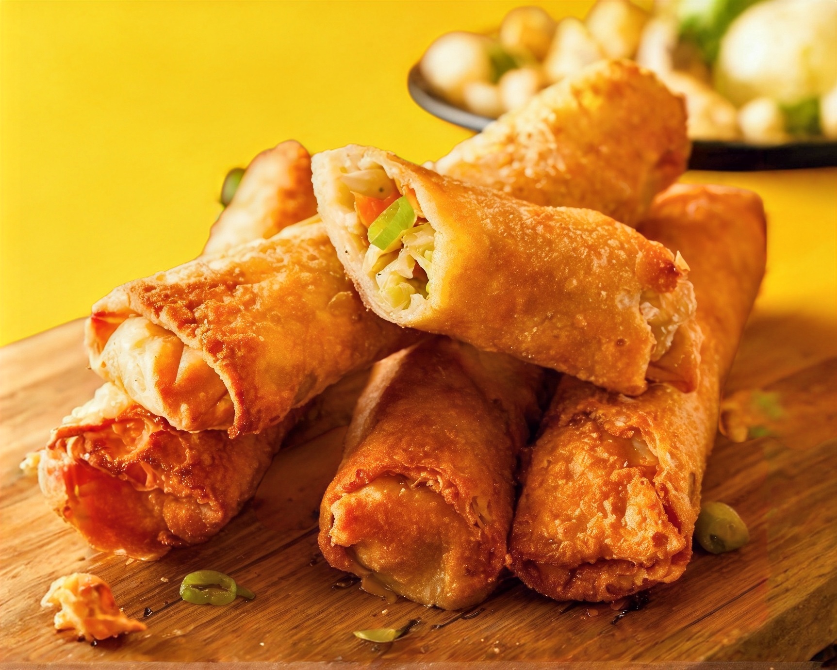 Zanahoria tempura, queso crema y aguacate por dentro y topping de coliflor Akichi en trocitos