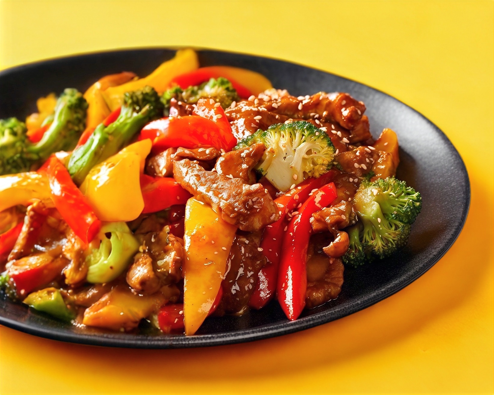 Pollo tempura salteado en una salsa de soya agridulce, con mix de pimientos y ajonjolí.