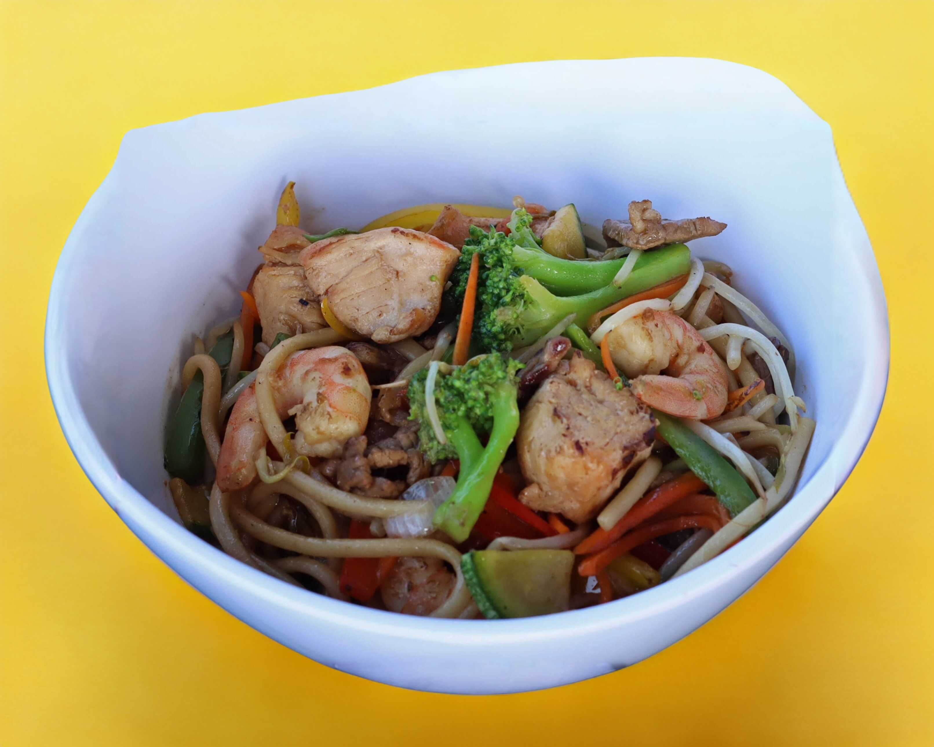 Fideos orientales salteados, con mix de vegetales, proteína a elegir y salsa chow mein.