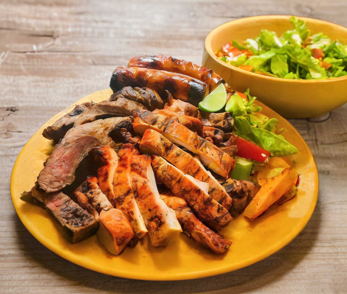 1/2 Kg de Fajita de Pollo y Carne Asada. Incluye: salsa, limón, tortillas, frijoles charros, salchicha asada, salchicha polaca y cebolla asada. El peso marcado en este menú, es en crudo.