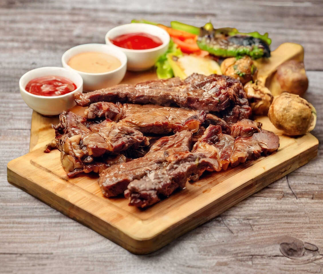 1 Kg. de Carne Asada. Incluye también salsas, limón, tortillas y frijoles charros. El peso marcado en este menú, es en crudo.