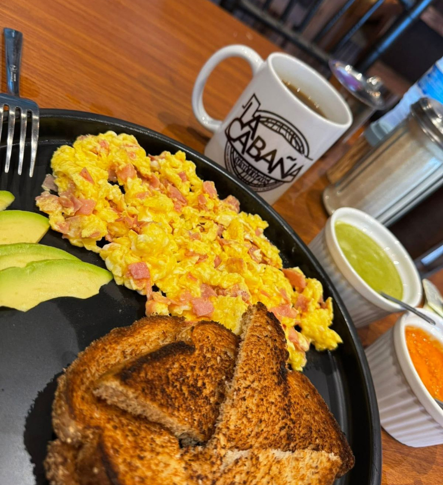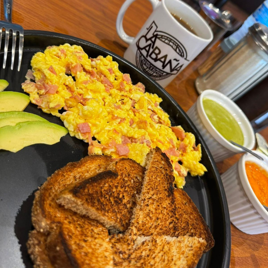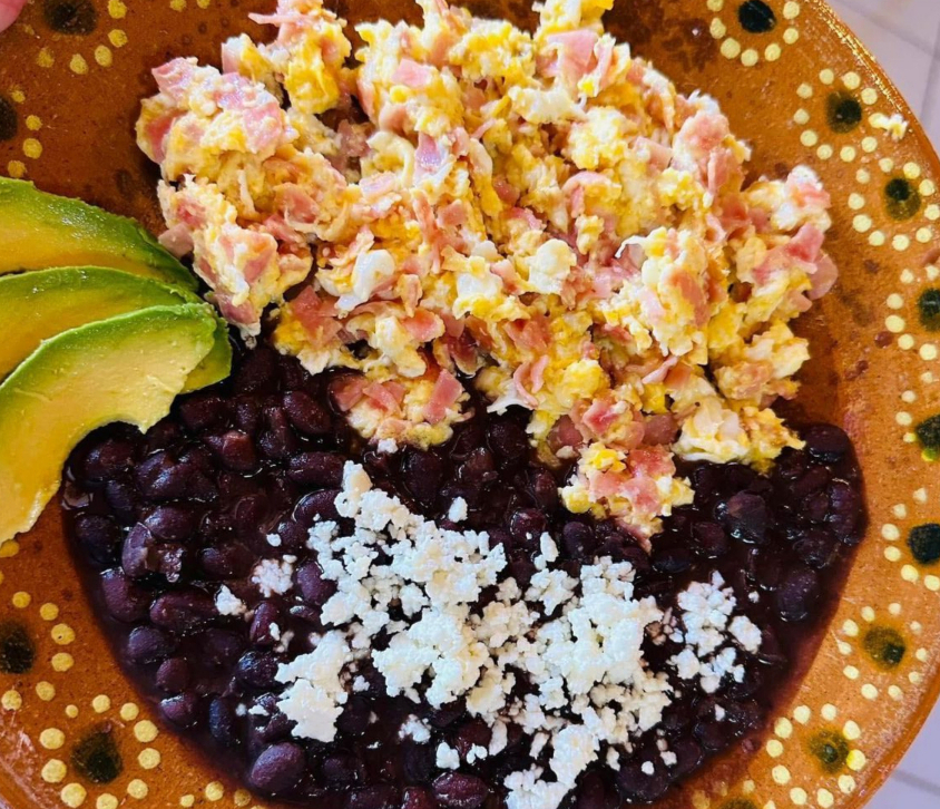 huevos revueltos con tocino.