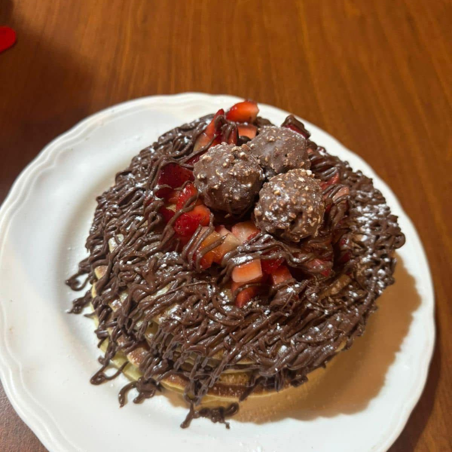 2pz de hot cakes con topping de Nutella y plátano.