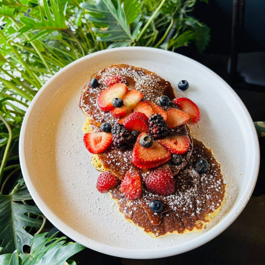 2pz de hot cakes con fruta de temporada.