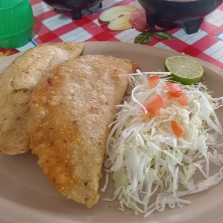 Quesadilla frita rellena de queso asadero y el guiso de tu preferencia