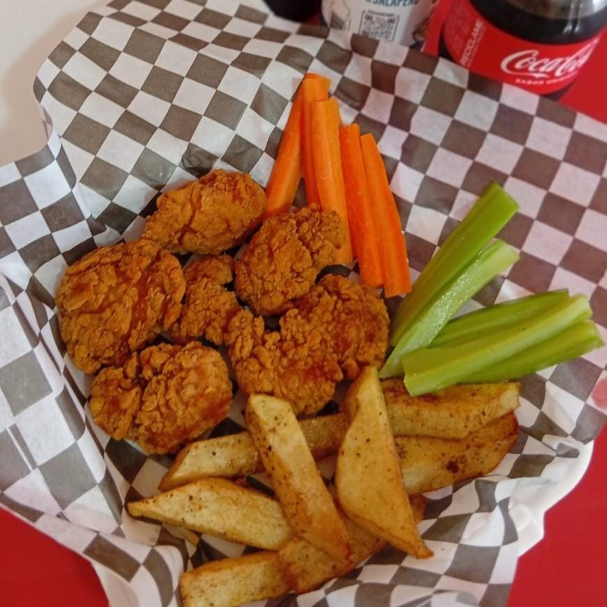 Media Órden de Boneless acompañados con una porción de papas, apio y zanahoria con una salsa a elegir.