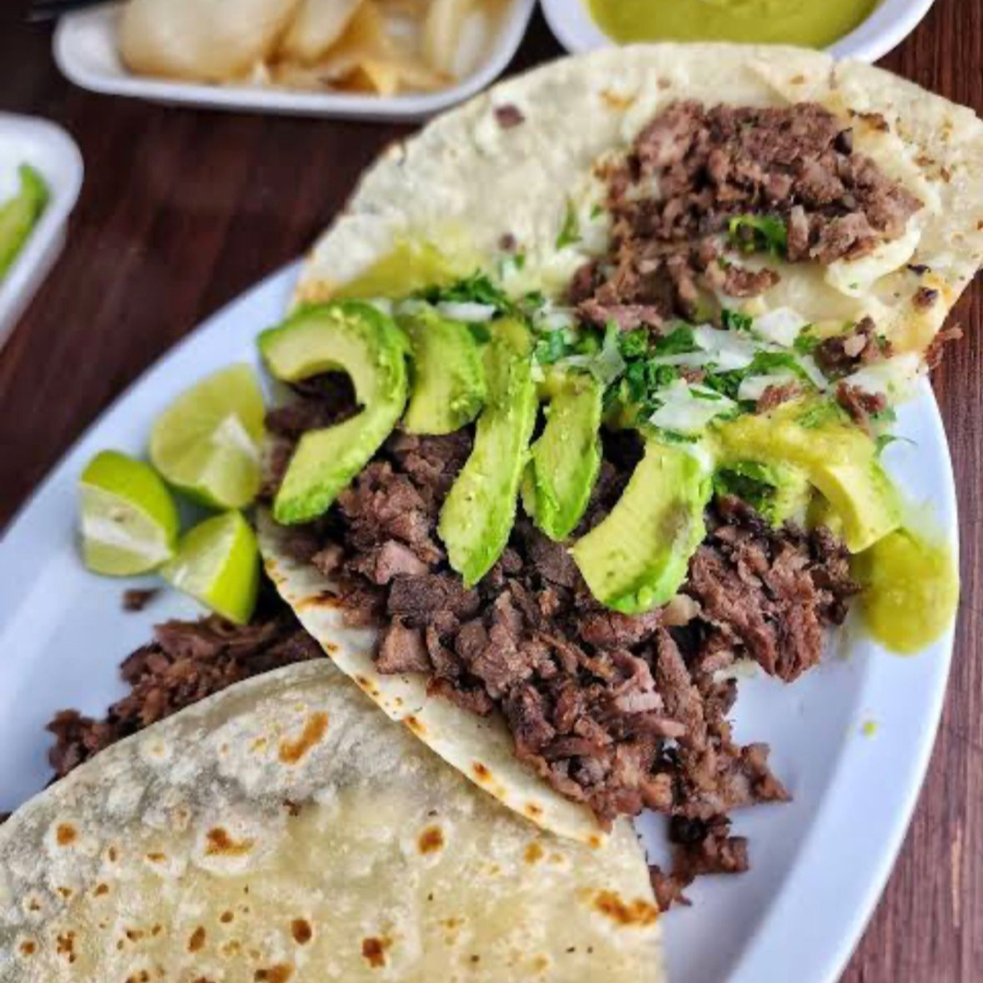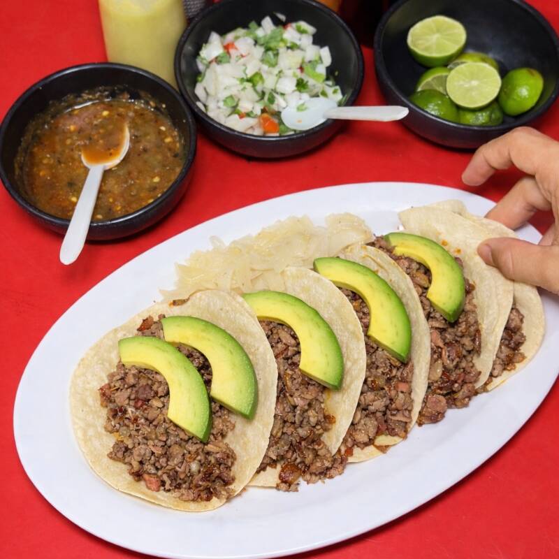 Taco de Carne Asada con Doble Tortilla de Maíz, Con Queso Asadero y Aguacate