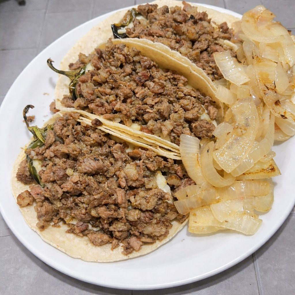 Taco Con Doble Tortilla de Maíz Con Chile Jalapeño Asado Relleno de Queso Asadero y Queso Philadelphia y Carne
