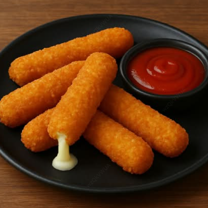 Banderilla bañada en ranch y una salsa a elegir. Acompañada de papas y un dedo de queso