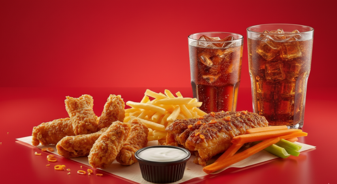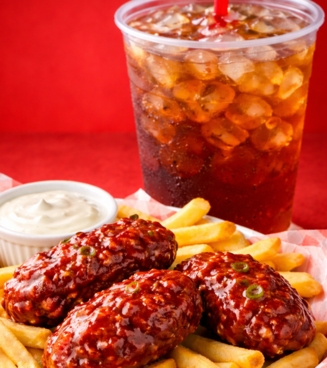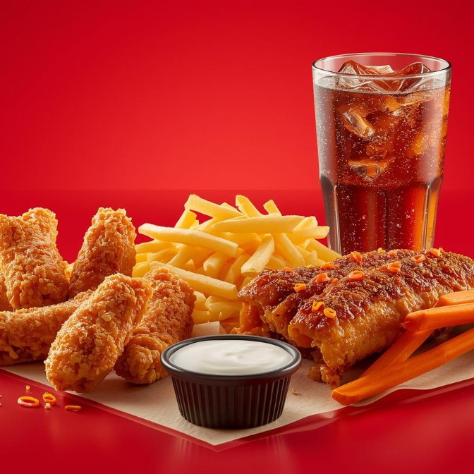 Disfruta 6 irresistibles boneless de pechuga de pollo, acompañados de un delicioso elote en costillas, una porción de papas fritas y para completar la experiencia, un refrescante té helado bien frío que equilibra cada bocado.