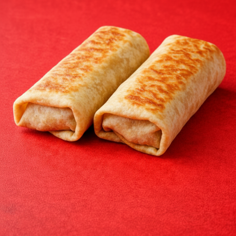Dos burritos fritos de frijoles, doraditos y crujientes por fuera, rellenos de frijoles cremositos y llenos de sabor por dentro