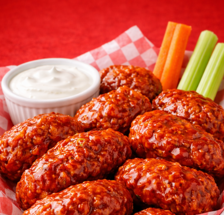 6 boneless de pechuga de pollo crujientes y jugosos, bañados en 2 salsas a tu elección. Acompañados de barritas de zanahoria, apio y cremoso aderezo ranch.