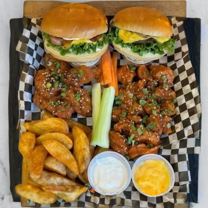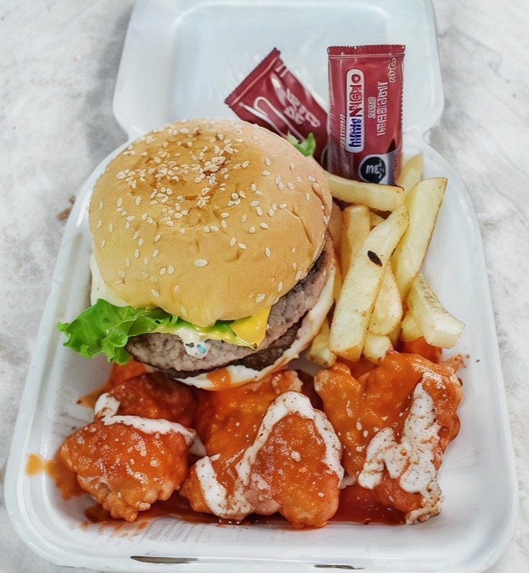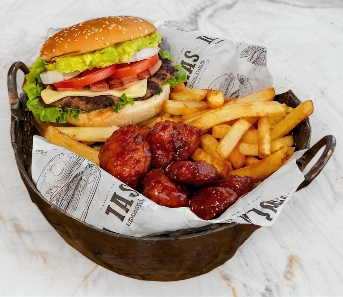 Hamburguesa Sencilla*2 + Burrito*2 + Media Orden De Papas Gajo*1 + 10 Boneless*1