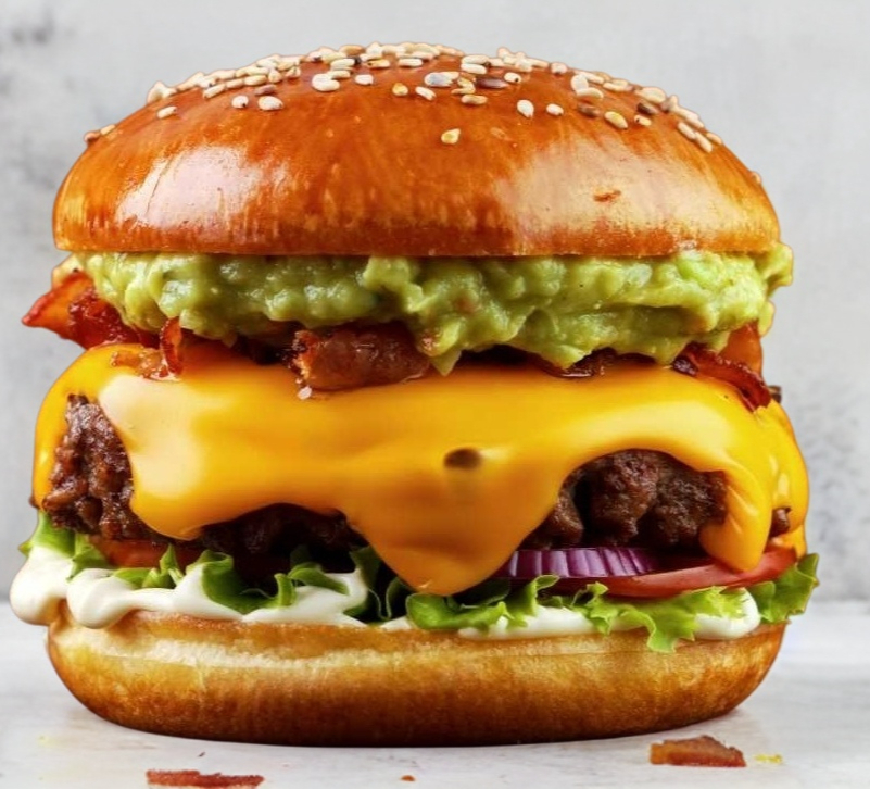 carne de res, guacamole, tocino, jamón, jitomate y lechuga