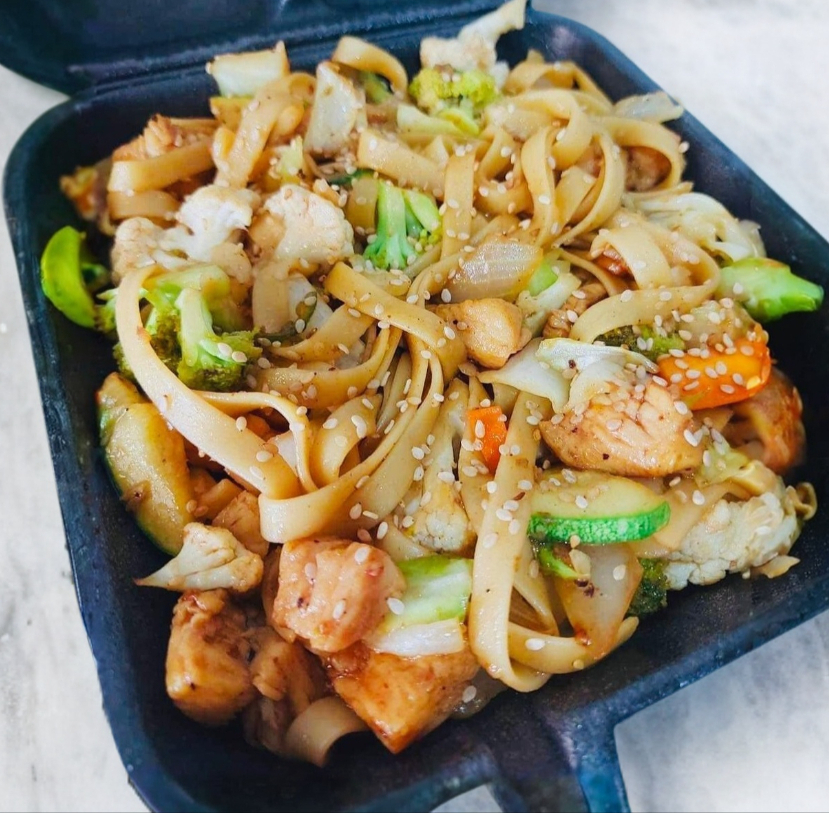 Deliciosos trozos de fajita de pollo salteados con verduras, ajonjolí y salsa de la casa. Incluye porción de arroz chino.