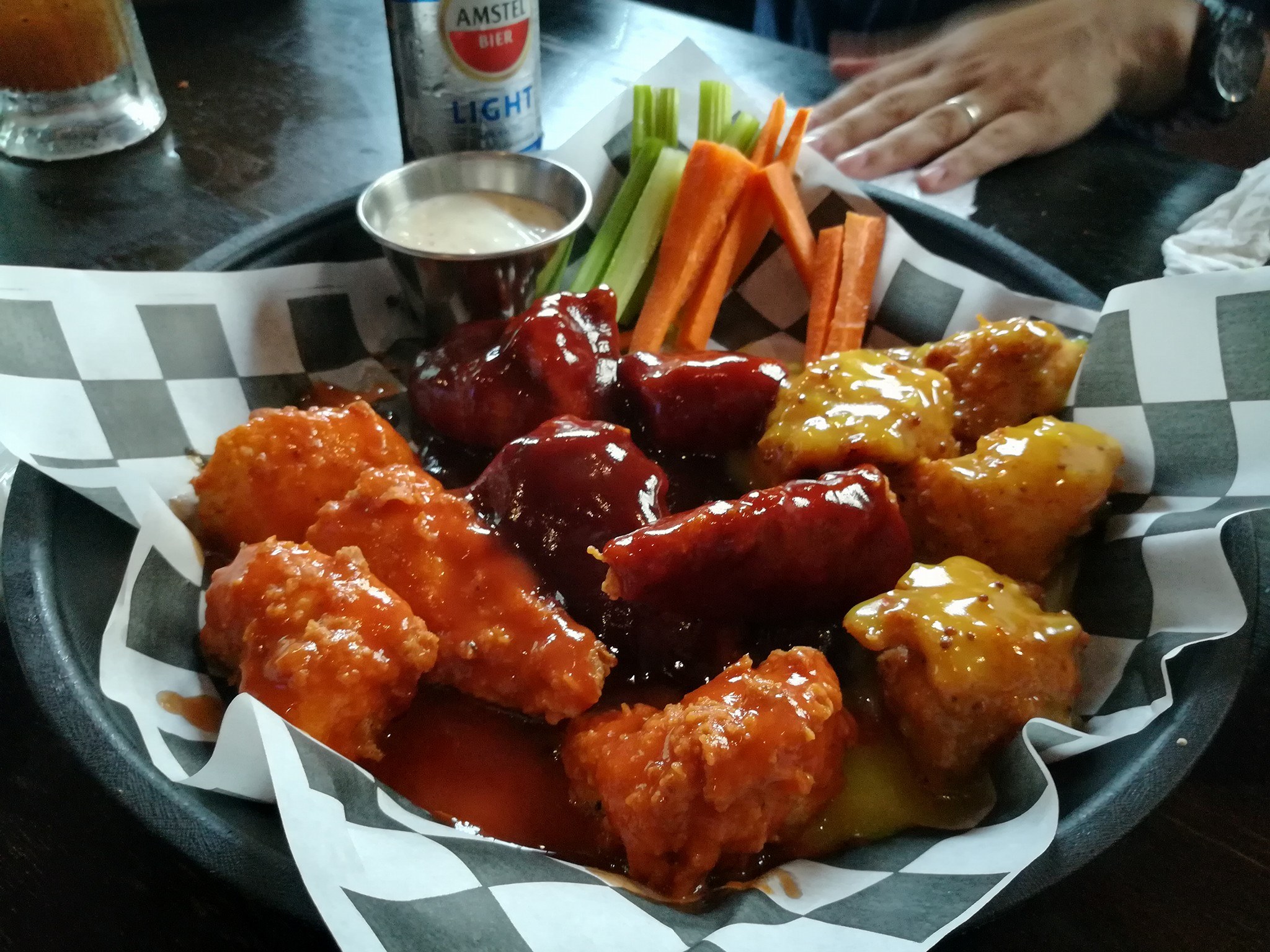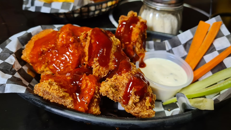 Boneless bañados en salsa buffalo.