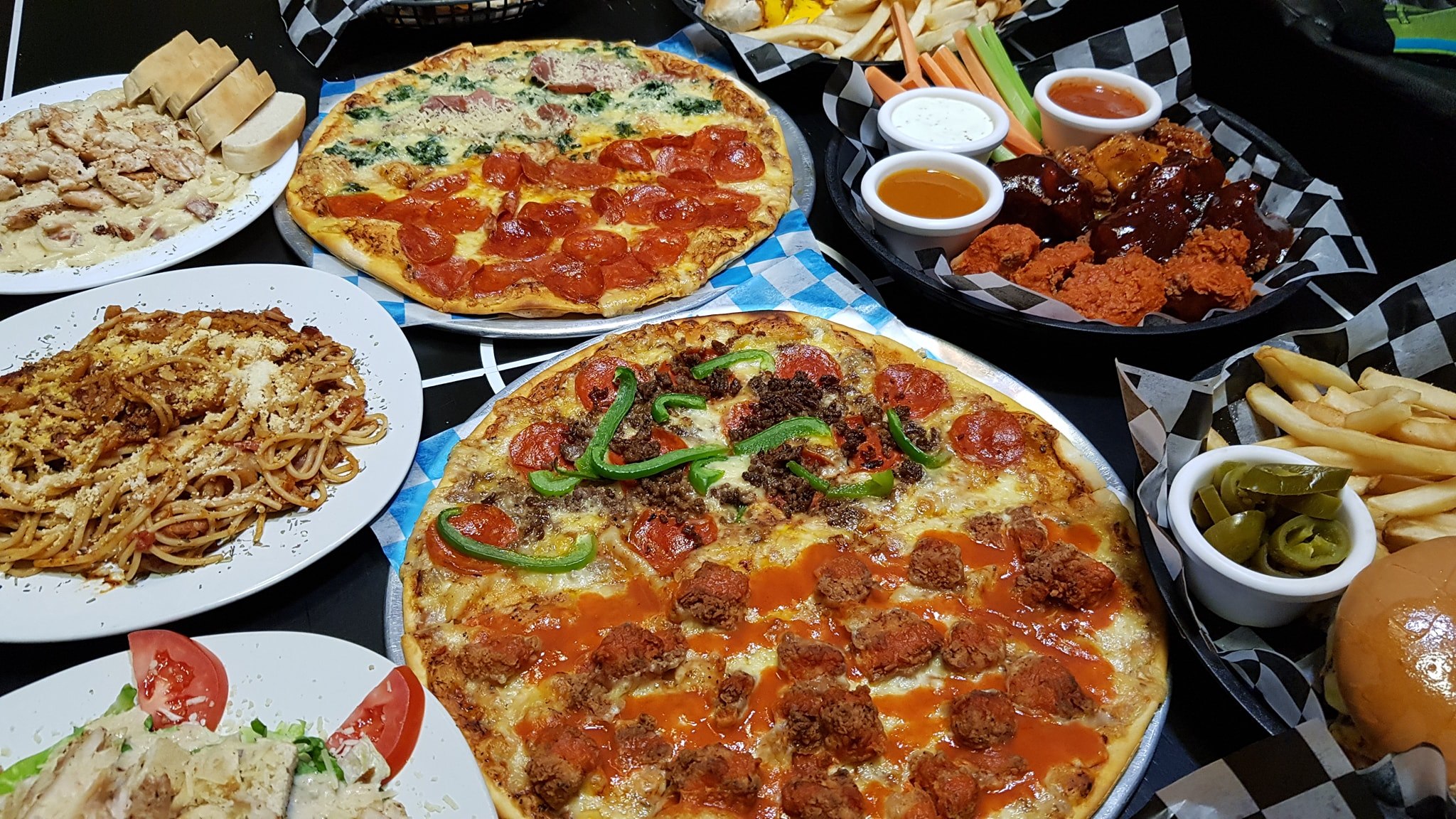 Con salsa cremosa a base de tres quesos, trocitos de tocino acompañado con pan focaccia recién horneao.