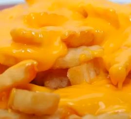 Papas a la francesa bañadas en queso amarillo y chili de la casa.