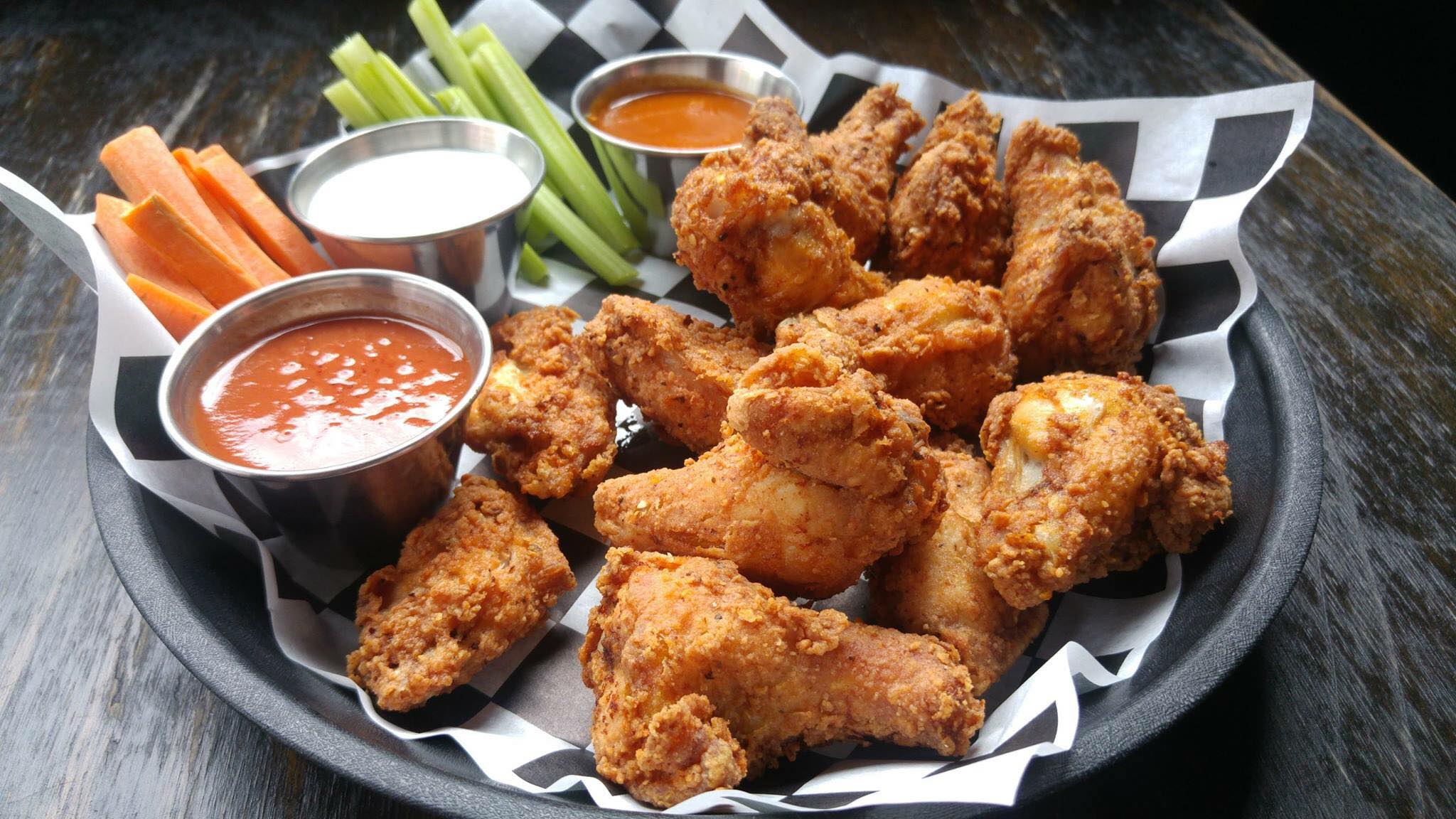 Mezcla de lechuga ramona y orejona, zanahoria rallada, trocitoS de apio, buffalo boneless y aderezo ranch.