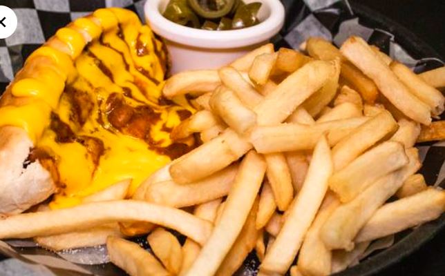 Carne angus de res, queso manchego, tocino y chili de la casa. Incluye papas a la francesa.