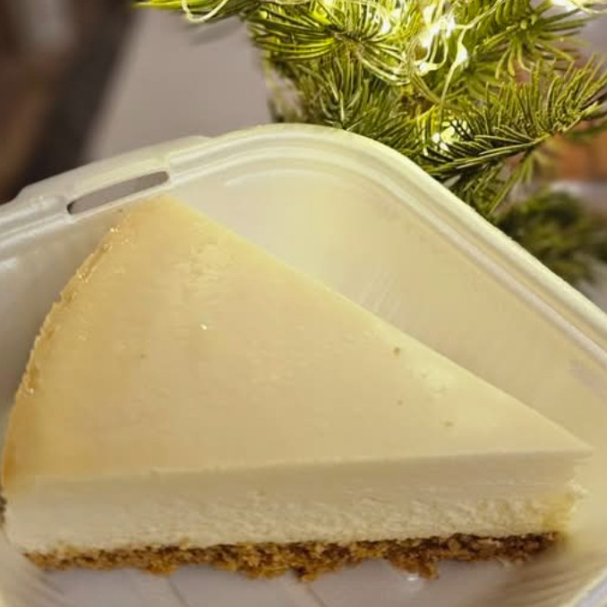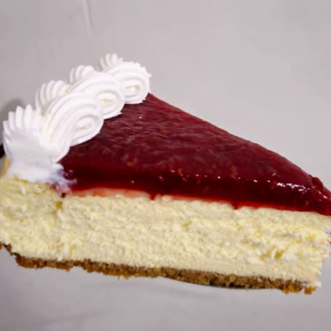 Clásico cheesecake cremoso y suave con un sabor delicado de queso en una base de galleta.