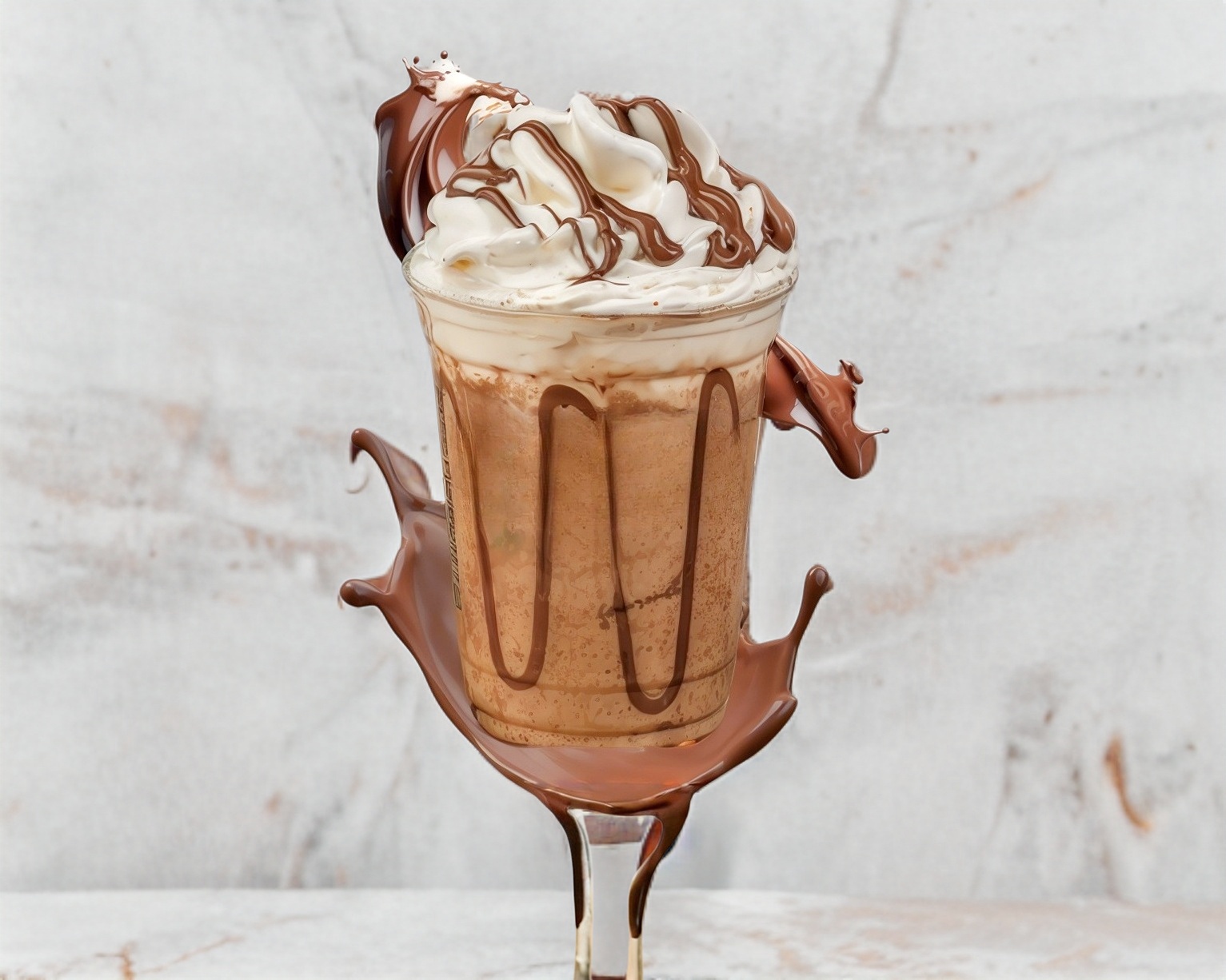 Grande (16oz-473 ml). Frappe de chocolate moka, leche y hielo, crema batida, y chocolate