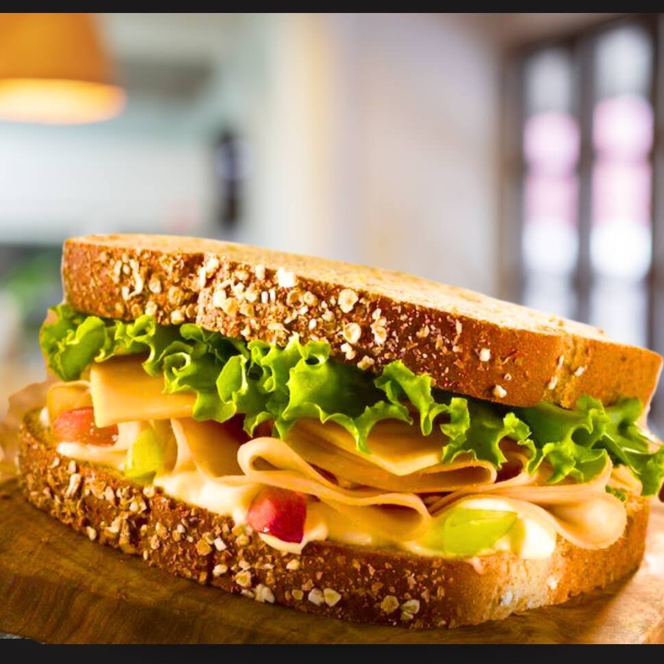 Sandwich Clásico en pan de Masa Madre, jamón de pavo, queso americano, cama de lechuga, tomate y mayonesa. Incluye chiles en vinagre
