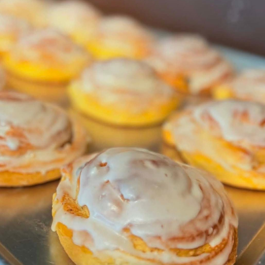 Delicioso rol de canela glaseado, aromático, suave y perfecto para un antojo dulce.