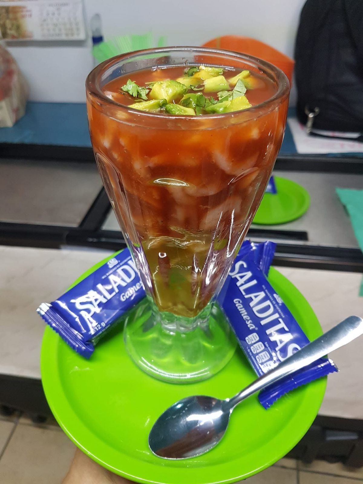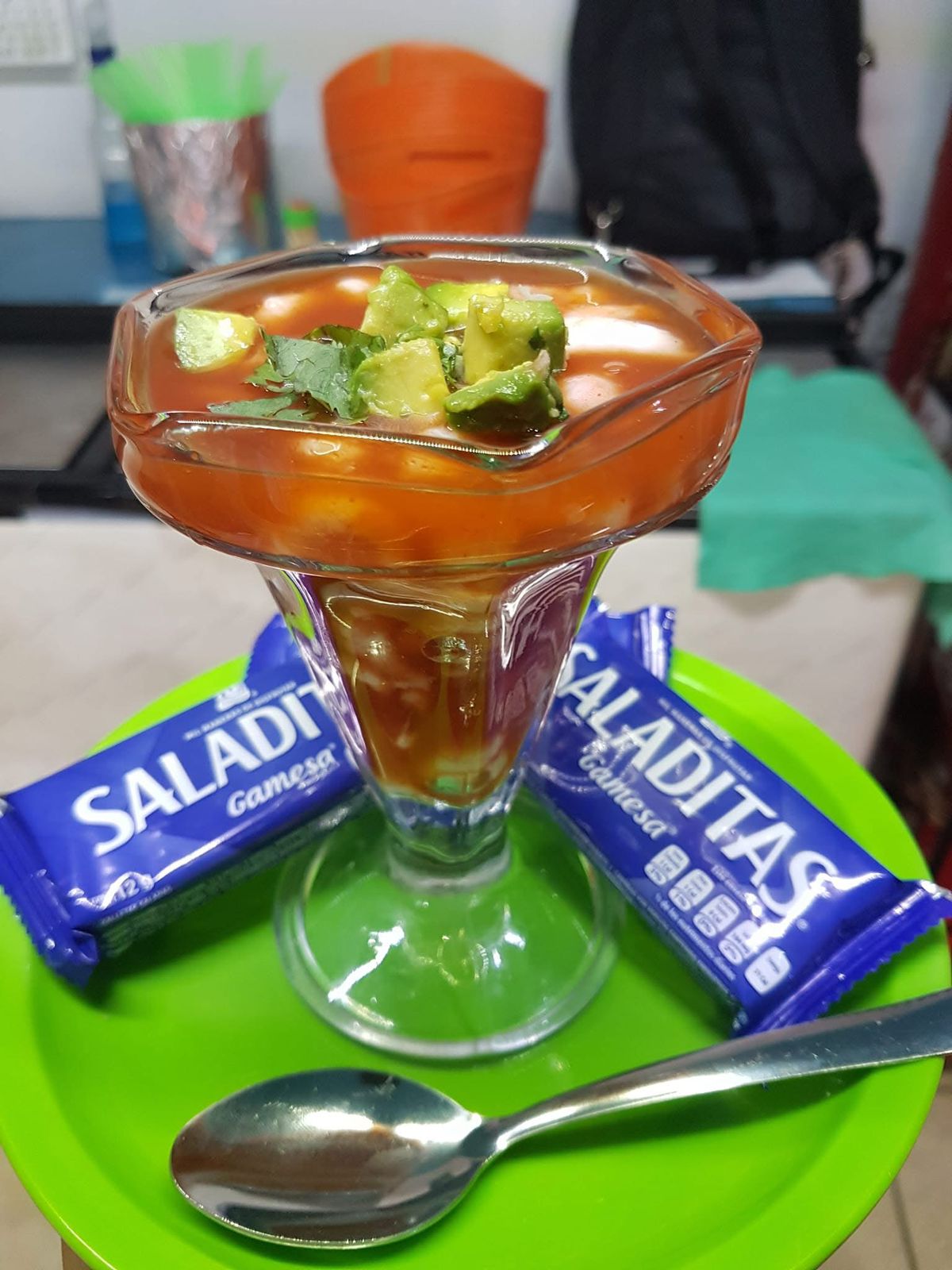 Paq 1-Sopa de Mariscos Ch más Coctel de Camarón Ch