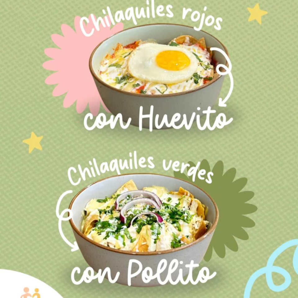 TOTOPOS BAÑADOS EN SALSA ROJA O VERDE CREMOSA ESTILO SUIZA, GRATINADOS CON QUESITO Y CORONADOS CON HUEVO, SERVIDOS CON FRIJOLES Y CREMA .