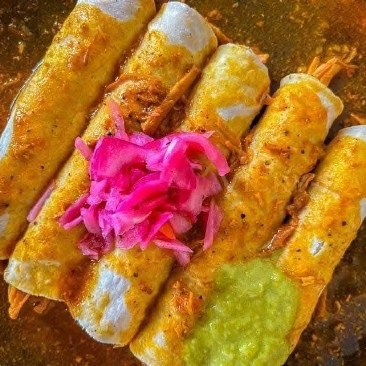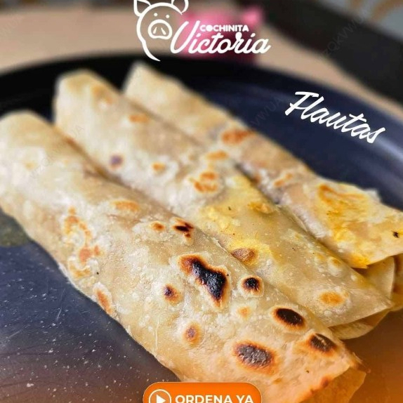 3 flautas de cochinita + bebida de 355ml Coca Cola