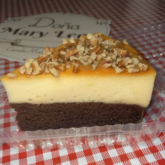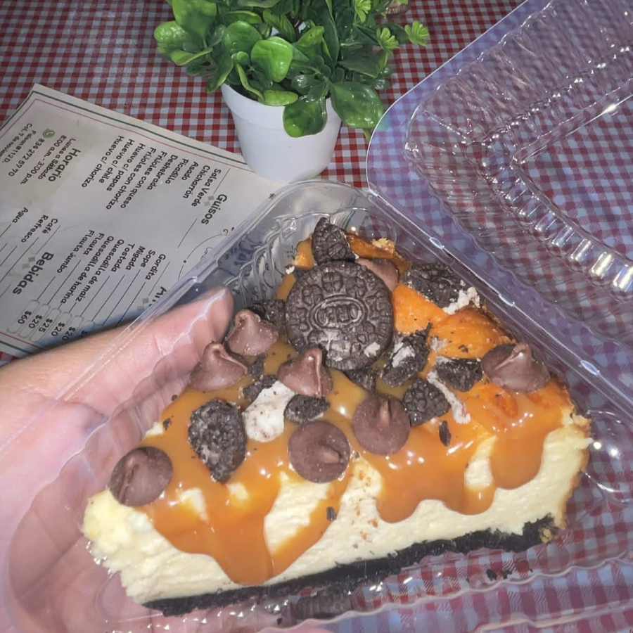 Pay de queso con base de galleta Oreo, topping de chispas de chocolate semiamargo, cajeta y galleta oreo.