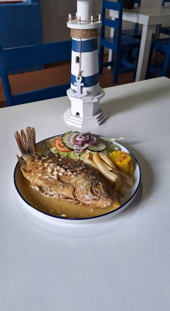 Filete de tilapia y sopa de mariscos.