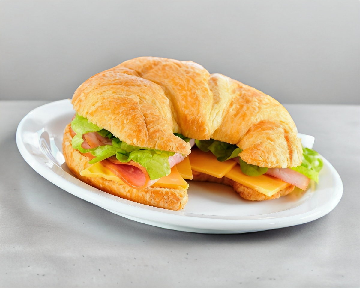 Cuernito, con jamón, queso amarillo y philadelphia.