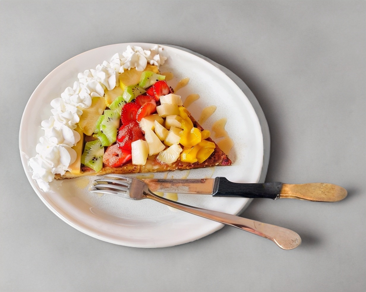 Durazno, fresa, manzana, kiwi, piña, merm de zarzamora, lechera.