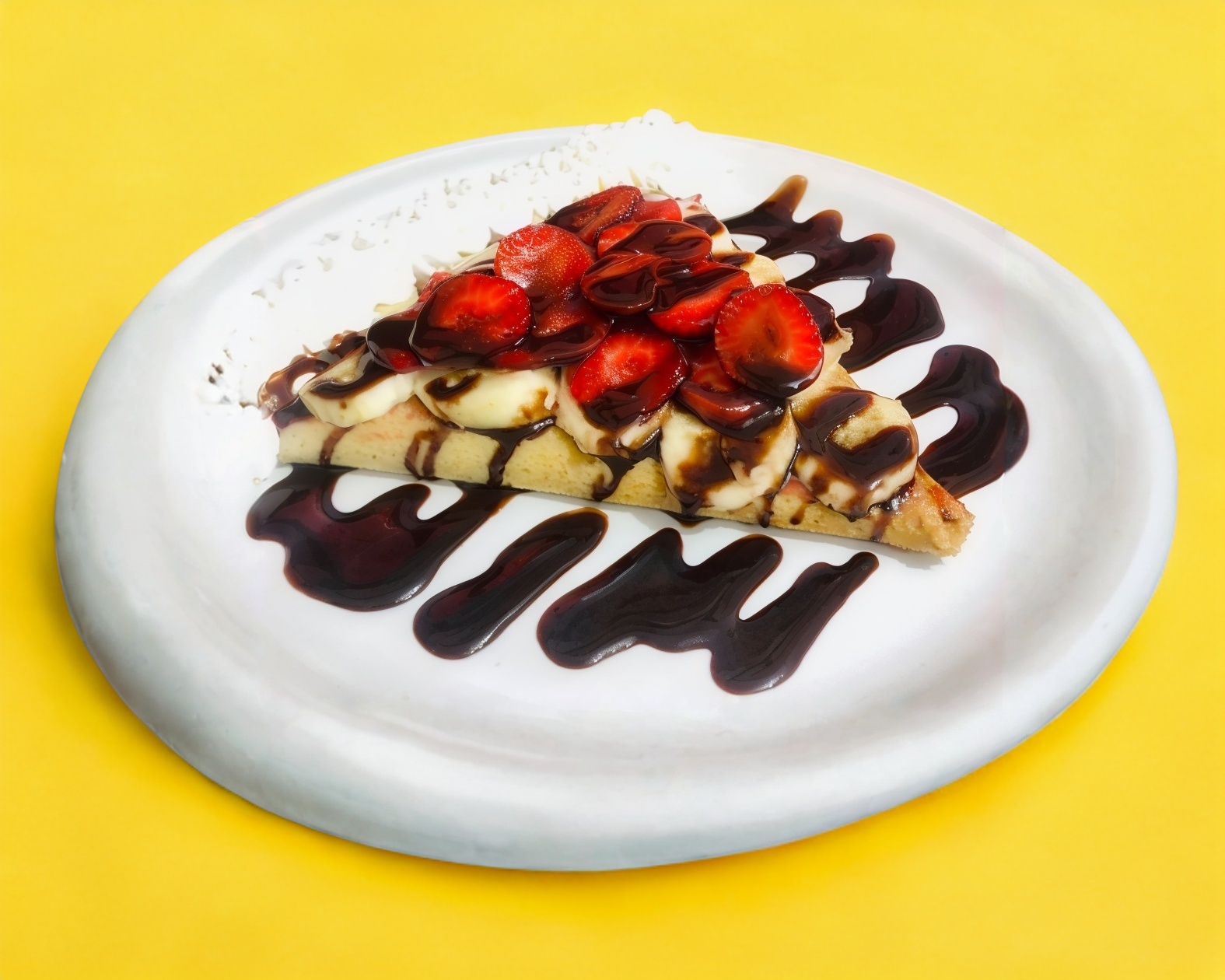 1 pieza de Deliciosa Crepa elaborada con Nutella, acompañada de un riquísimo licuado de Fresa de 350ml, ¡y con una promoción increíble!