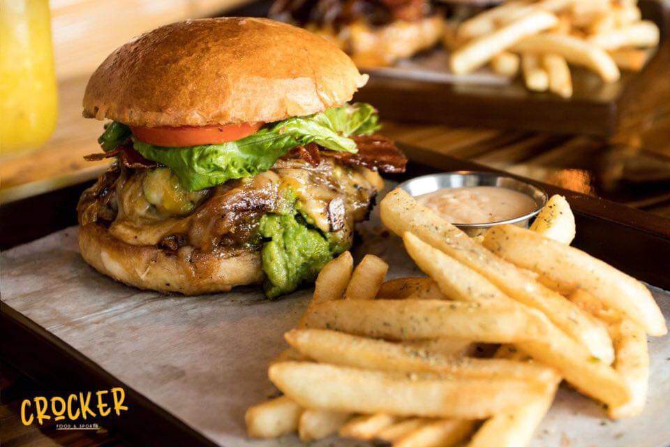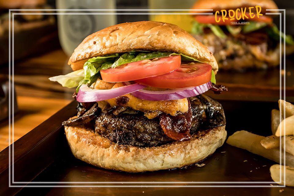Carne de res, queso cheddar y queso suizo, guacamole, tocino, cebolla caramelizada, tomate, lechuga y aderezo chipotle. Acompañada de papas rectas.