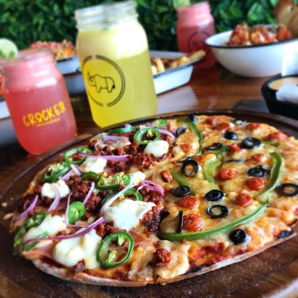 Carne molida, jalapeño fresco, pimientos y cebolla morada.