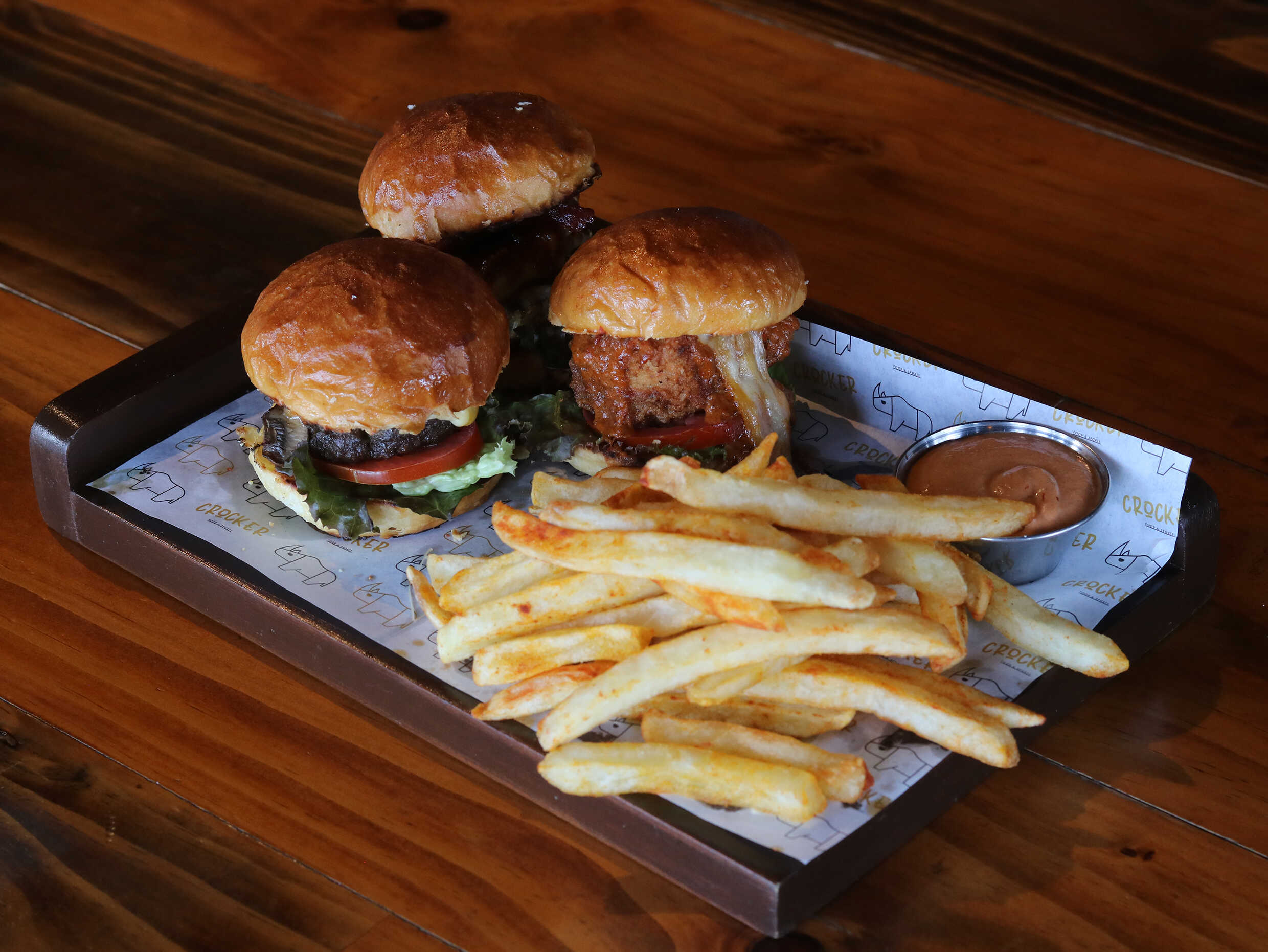 Cissé, leba y tiguer, en miniatura, acompañadas de papas rectas. ¡Disfrutalas!